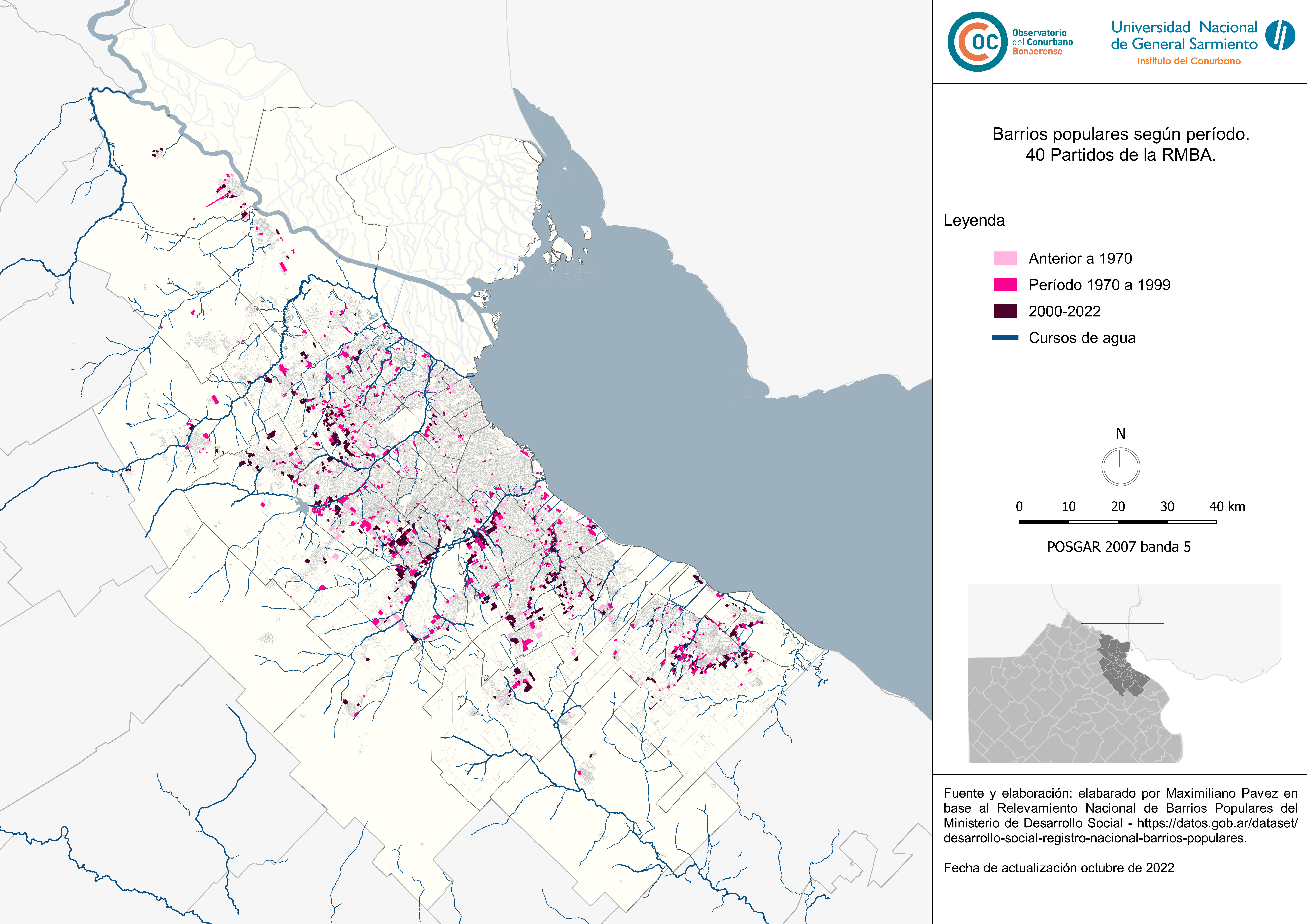 Barios populares según período / Mapa