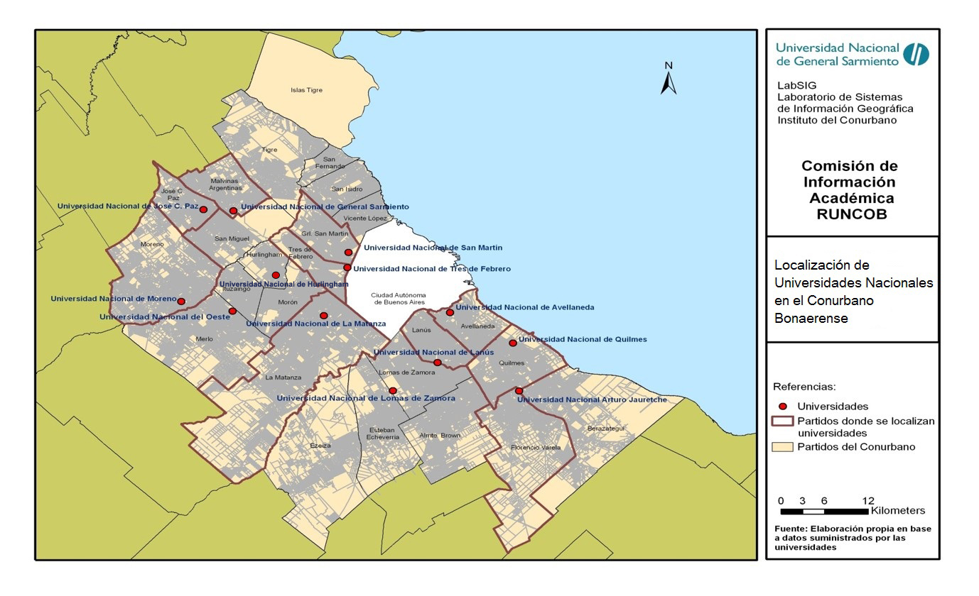 Localización de Universidades Nacionales en Conurbano Bonaerense / Mapa