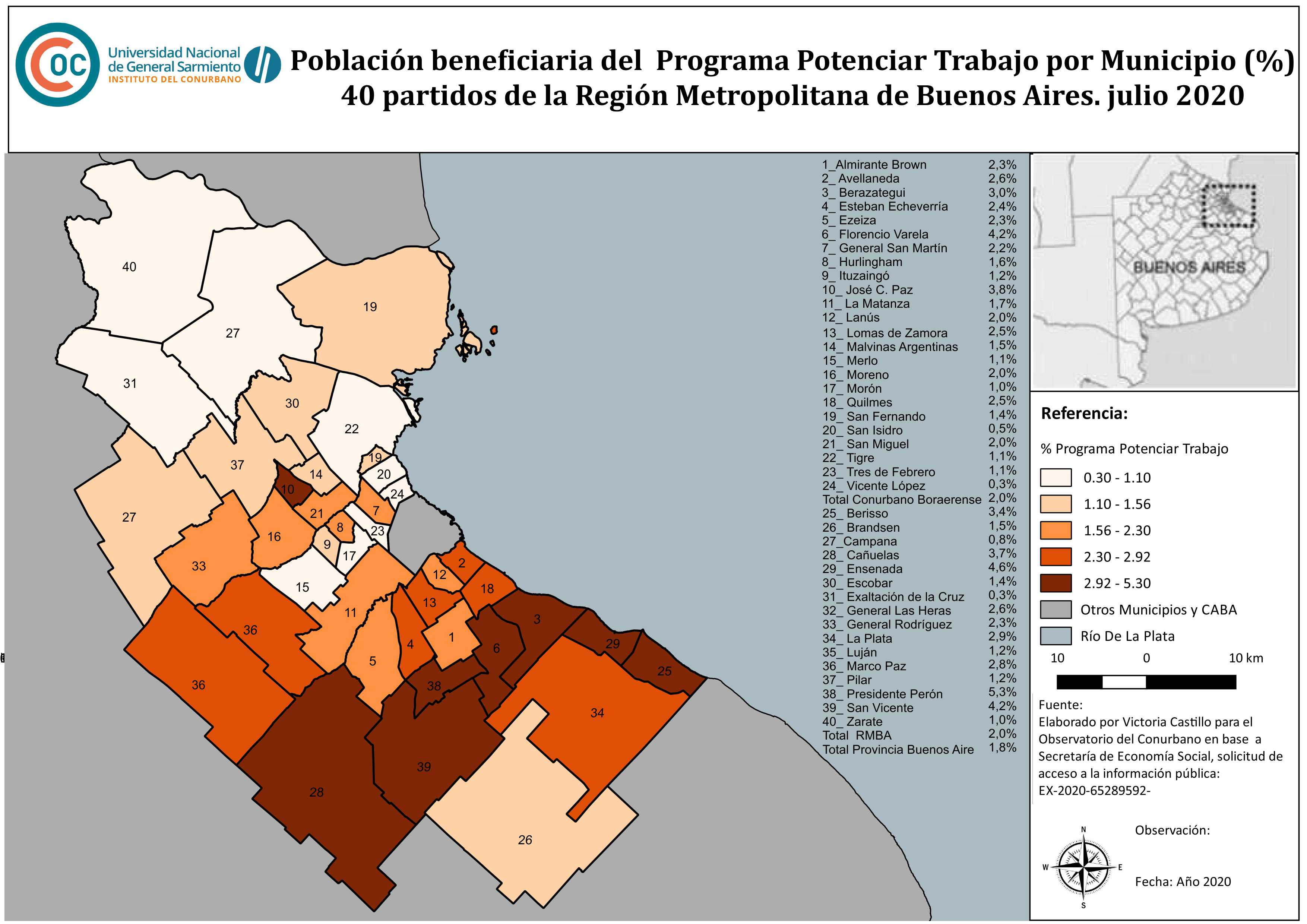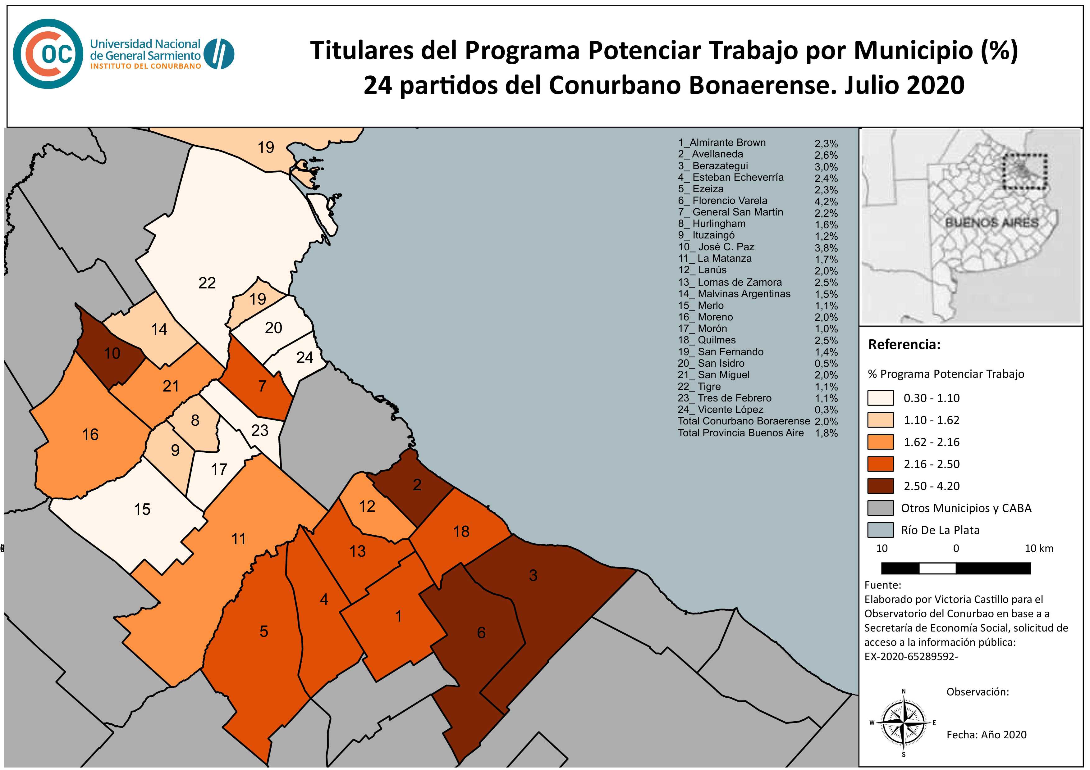 24 partidos del conurbano bonaerense, total Provincia de Buenos Aires. Julio 2020