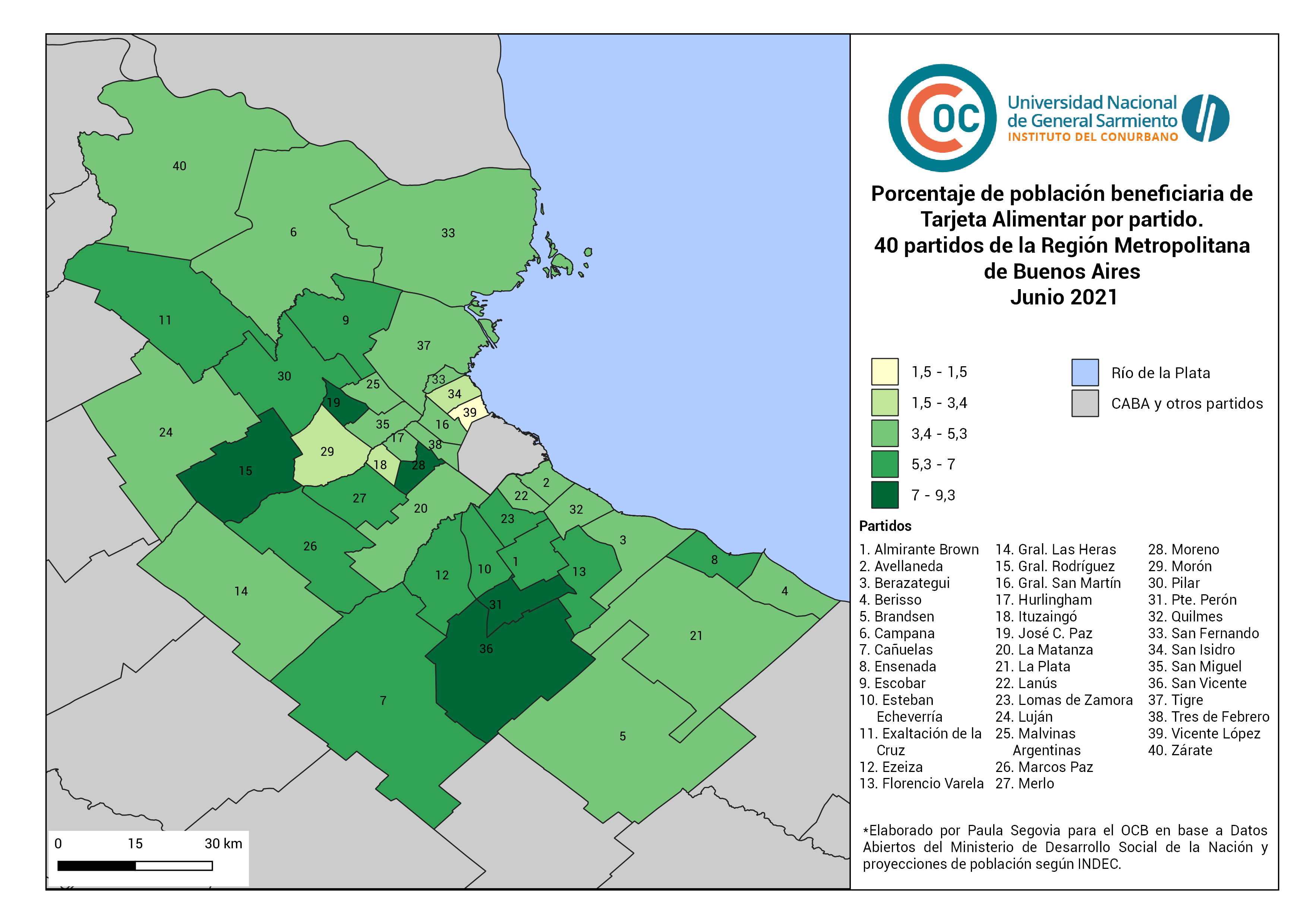 Porcentaje de la población beneficiaria de Tarjeta Alimentar, por partido.