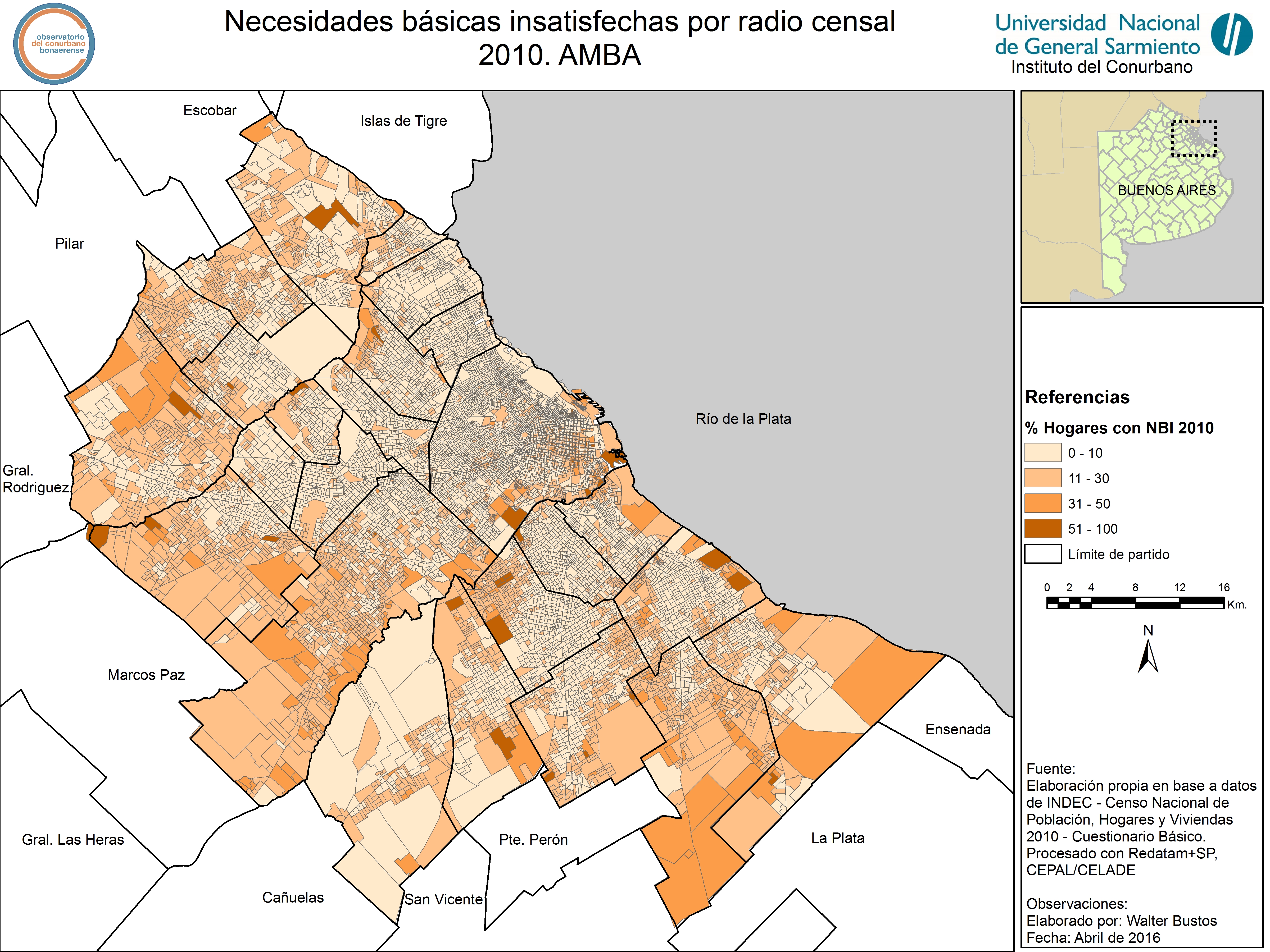 Hogares y porcentaje de hogares con al menos un indicador de Necesidades Básicas Insatisfechas por partido